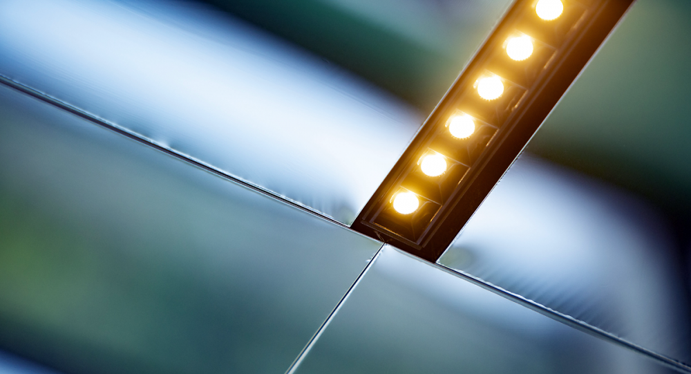 CF Tapissier Décoration a travaillé en collaboration avec une entreprise d'électricité afin que l'alignement des luminaires et des plafonds miroirs soit parfaitement horizontal.